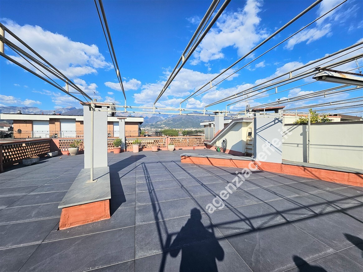 Elemento distintivo e di assoluto pregio è il magnifico lastrico solare esclusivo di circa 130 mq: un autentico rooftop privato da cui ammirare una vista straordinaria che spazia dal blu del mare al profilo delle Alpi Apuane. Uno spazio unico, ideale per creare un ambiente outdoor di alto livello, tra lounge, area dining e zone relax.
